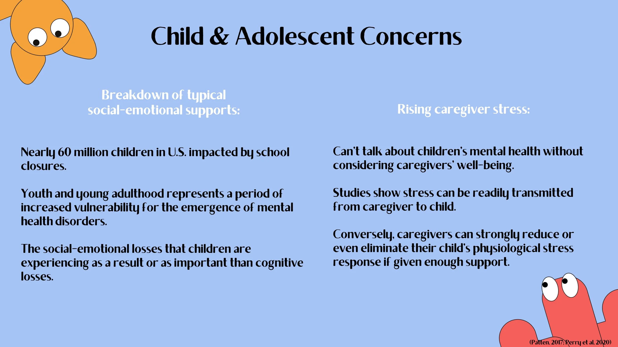 Additionally, we launched with child- and adolescent-specific concerns at front of mind. The emergence of COVID-19 in the U.S. led to school closures that impacted nearly 60 million children, disconnecting them from their peers and teachers at a developmental period where peers are of central importance, and that is critical in terms of neurodevelopment and vulnerability for the emergence of mental health disorders. Because of this we were very concerned, and remain concerned, that the social-emotional losses that children have been experiencing as a result of COVID-19 are as important if not more important than the cognitive losses.
