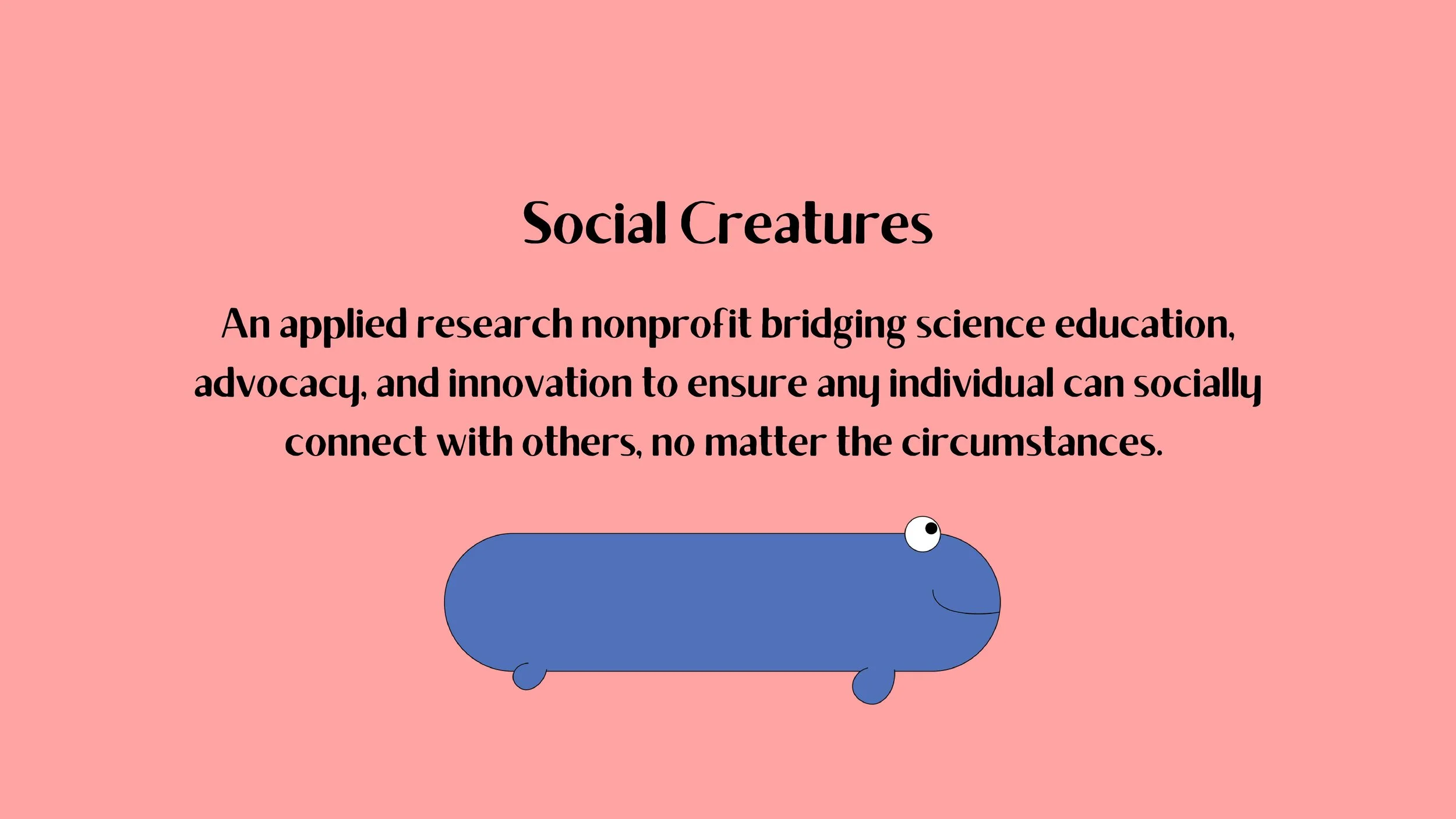 Social Creatures is an applied research nonprofit bringing together science education, advocacy and innovation to ensure that any individual can socially connect with others, no matter the circumstances. In other words, we care about equitable social infrastructure: ensuring that everyone has access to the spaces, organizations, and services that shape their ability to socially connect and build relationships with others.
