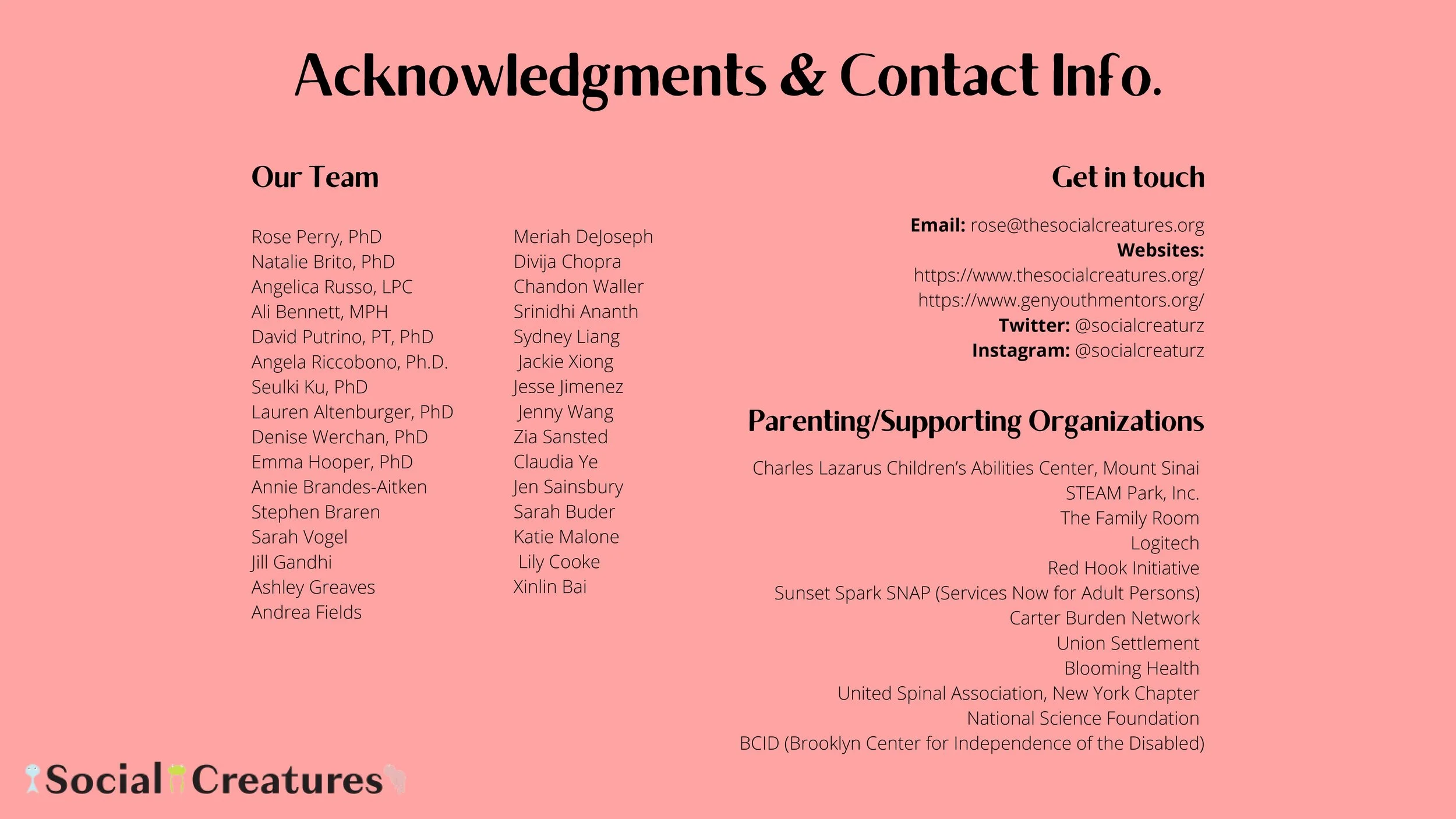 Thank you for your time. And thank you to the Social Creatures team who have been working around the clock for the past year. I encourage you to reach out via my email rose@thesocialcreatures.org. And you can learn more and follow along via our website and social media which I’ve listed on slide 16. Thank you!