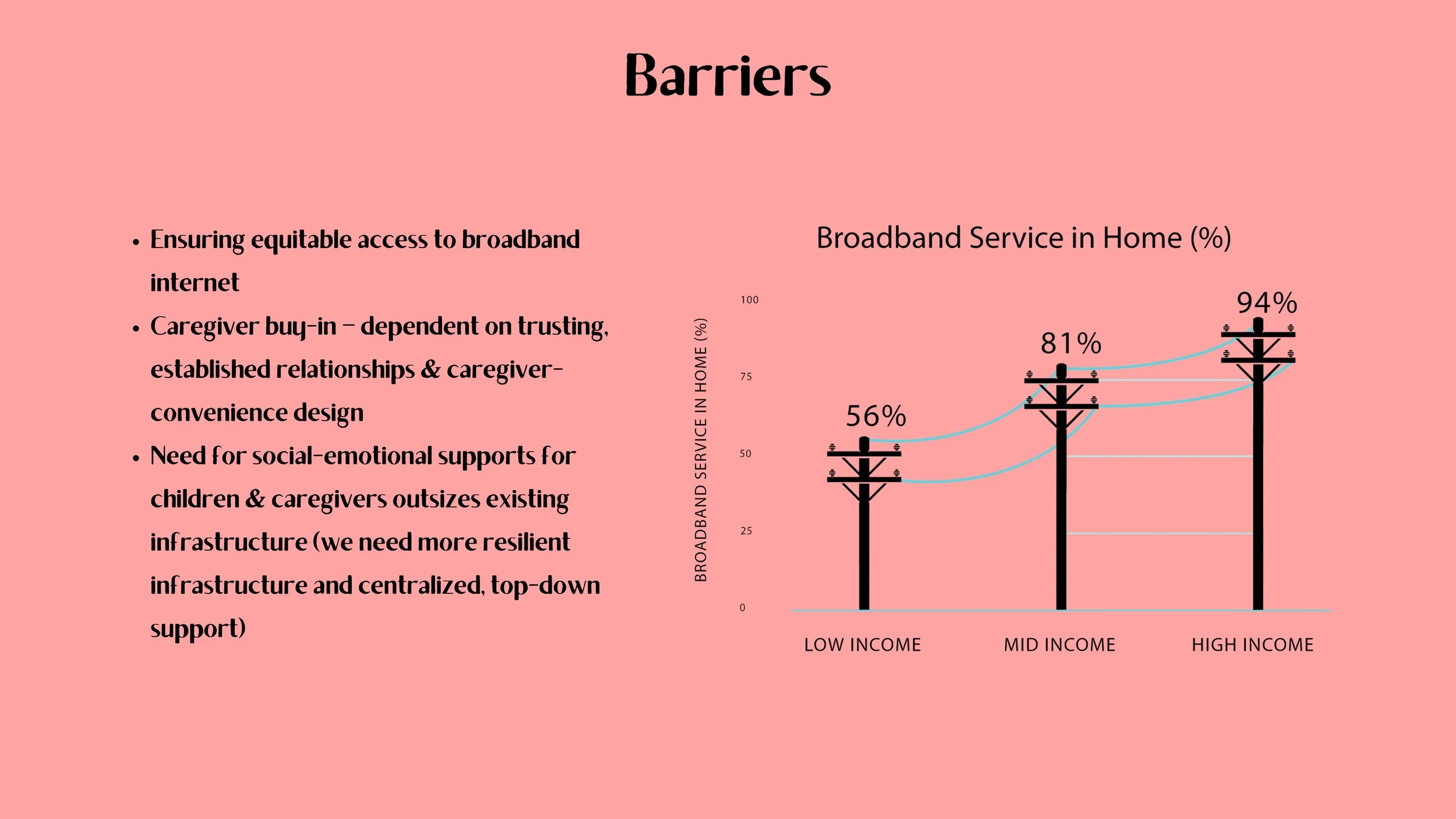 However, I also want to highlight that we’ve faced substantial barriers along the way. By far the biggest barrier that we faced and continue to face is ensuring equitable access to broadband internet. On slide 11, I have a graph showing that only 56% of low-income households have access to broadband internet versus 94% of their high-income peers. And even though major internet providers said they were opening up access in the early days of the pandemic, in reality this did not always translate to internet access for the low-income families in the communities we worked with. There were many unpublicized caveats–like if families had any outstanding debt with the companies (even if only $8) they could not setup a new account unless it was under a different adult in the household’s names, which became a nightmare to navigate for single-parent households.